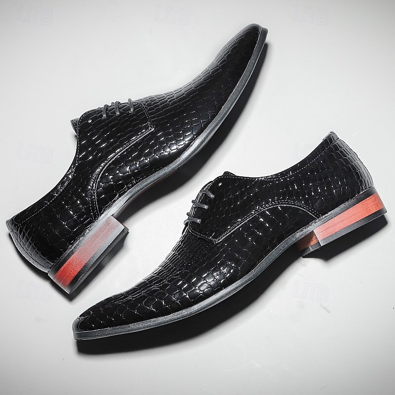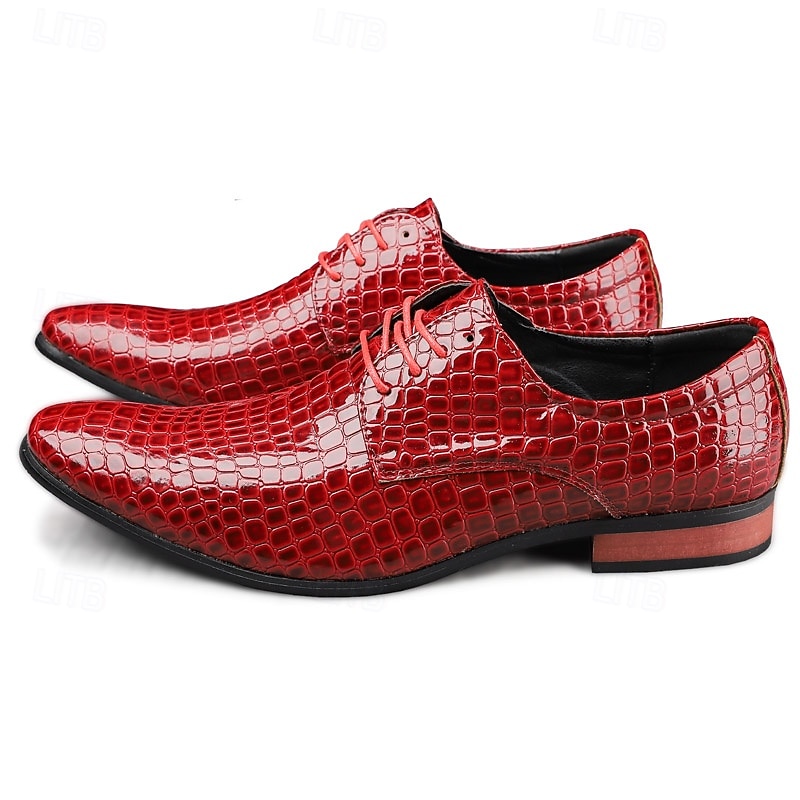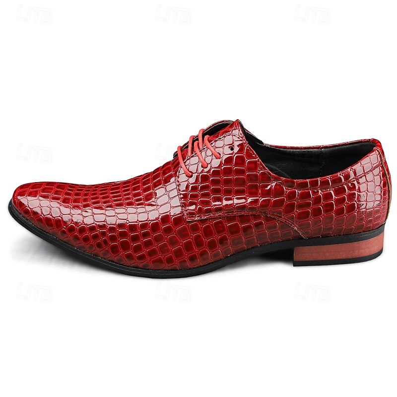 HOT ! Men's Red Crocodile Pattern Lace-Up Dress Shoes - Sleek Patent Faux Leather Oxford Shoes for Christmas,Formal Events and Parties