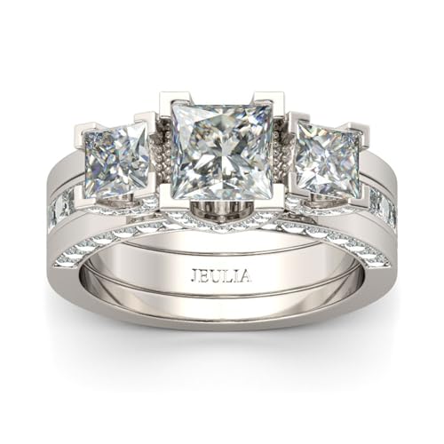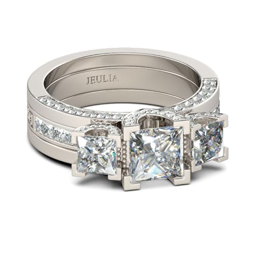HOT ! Jeulia 2PCS Interchangeable Engagement Ring Set for Women; 925 Sterling Silver Three Stone Radiant Cut Wedding Ring Bride Set CZ Anniversary Promise Rings for Her with Jewelry Gift Box