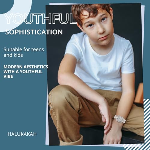 Halukakah Kids' Diamond Watch Sparkling Starry: 18k Real Gold/Platinum Plated,Elegant & Casual Rectangle Dial,Full of Diamonds,Stainless Steel Band Quartz Watch,Present for Boys and Girls 4