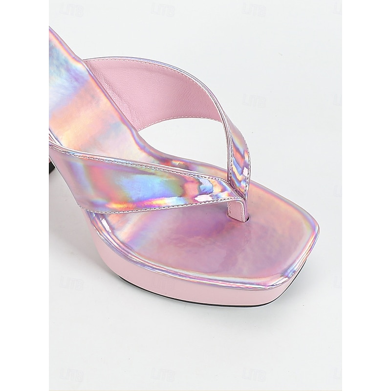 Women's Pink Iridescent Open-Toe Heels with Chunky Block Heel - Stylish High Heels for Nightlife Parties 12