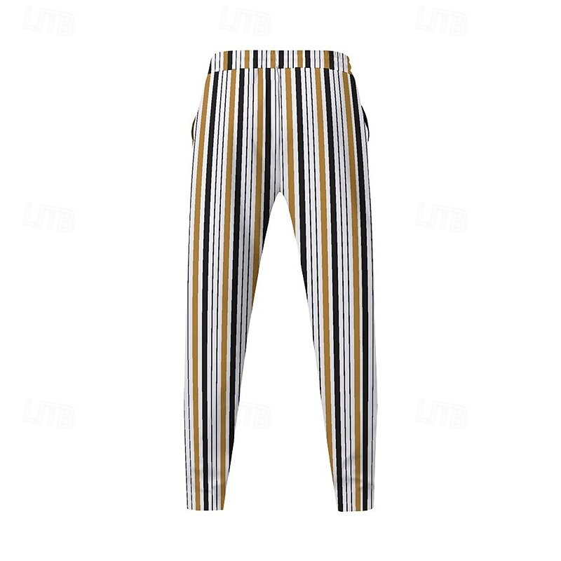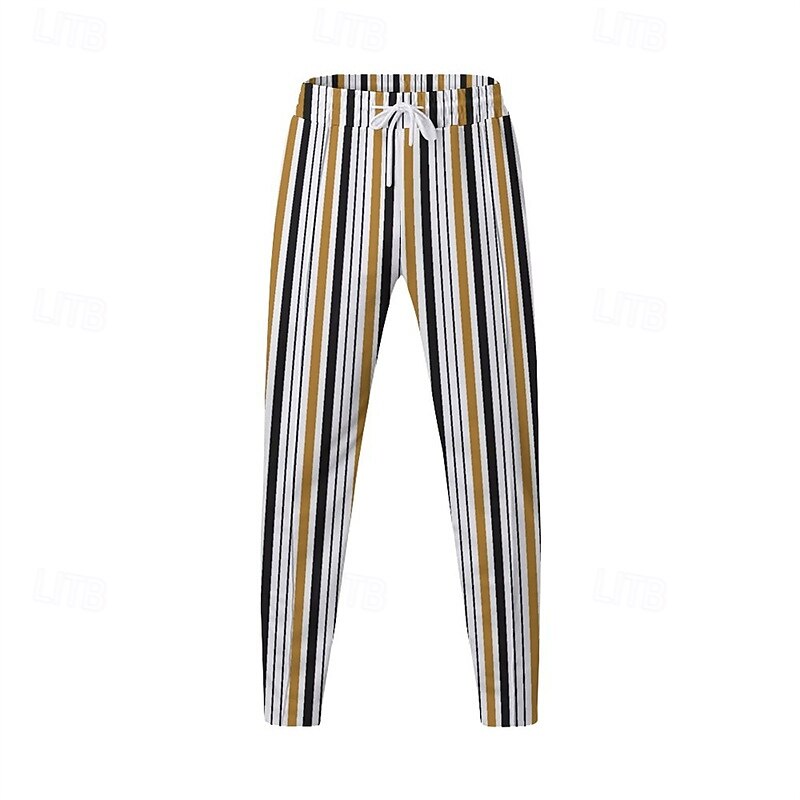 Men's Athletic Pants Sweatpants Trousers Pocket Drawstring Elastic Waist Striped Comfort Sports Outdoor Daily Fashion Casual Black-White Black Micro-elastic 18