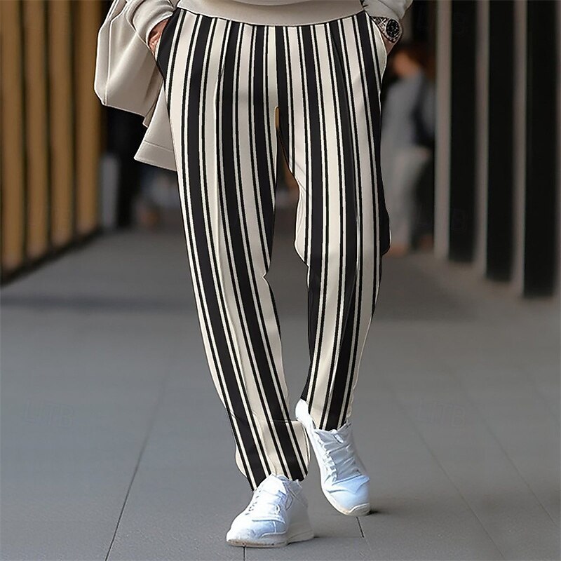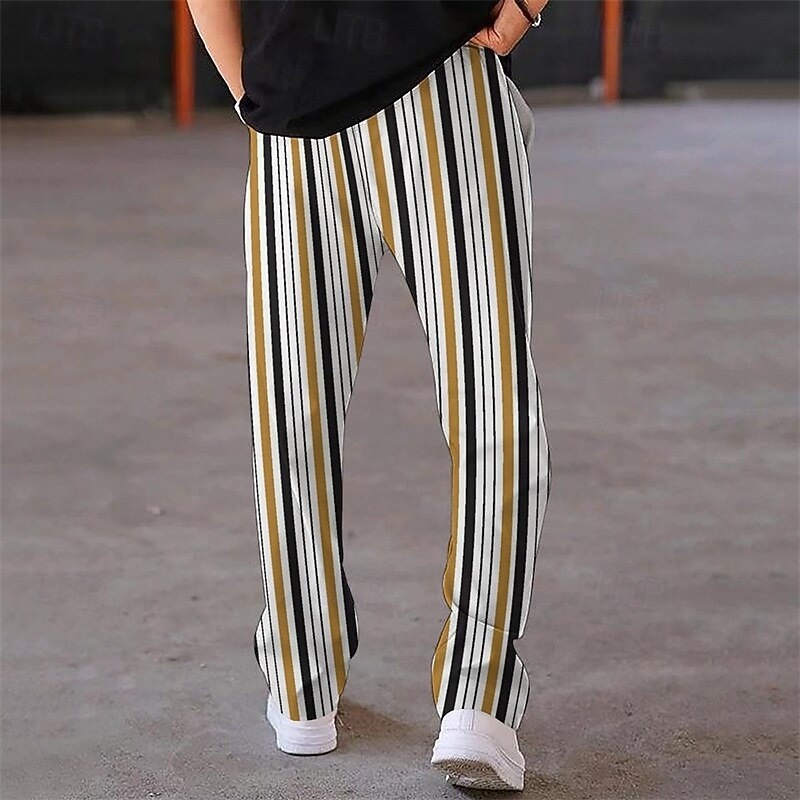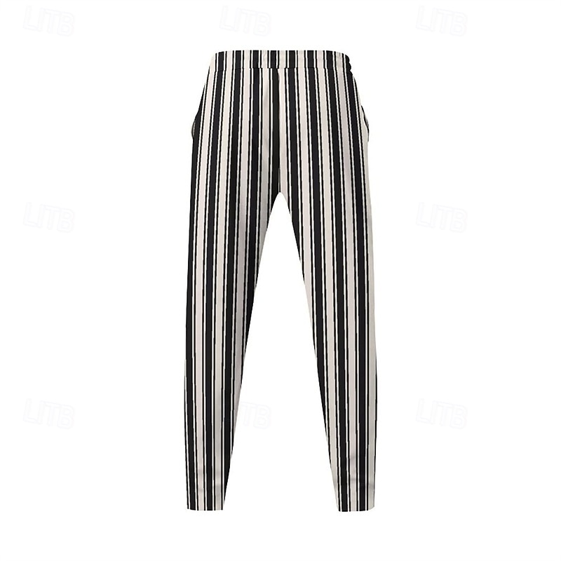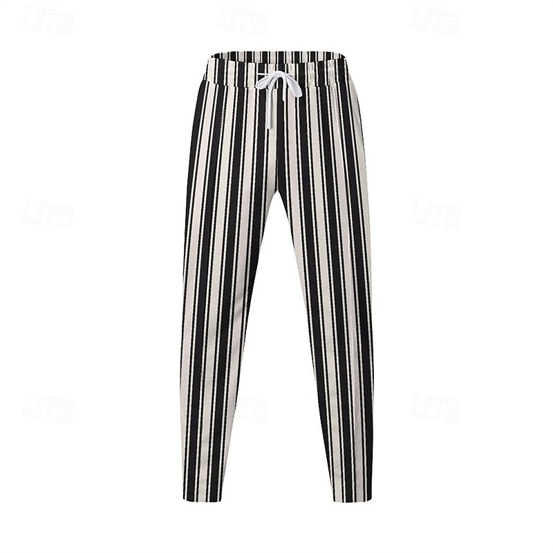 Men's Athletic Pants Sweatpants Trousers Pocket Drawstring Elastic Waist Striped Comfort Sports Outdoor Daily Fashion Casual Black-White Black Micro-elastic 8