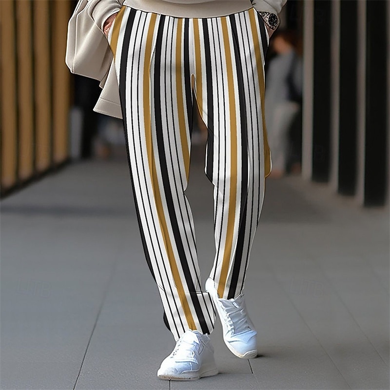 HOT ! Men's Athletic Pants Sweatpants Trousers Pocket Drawstring Elastic Waist Striped Comfort Sports Outdoor Daily Fashion Casual Black-White Black Micro-elastic