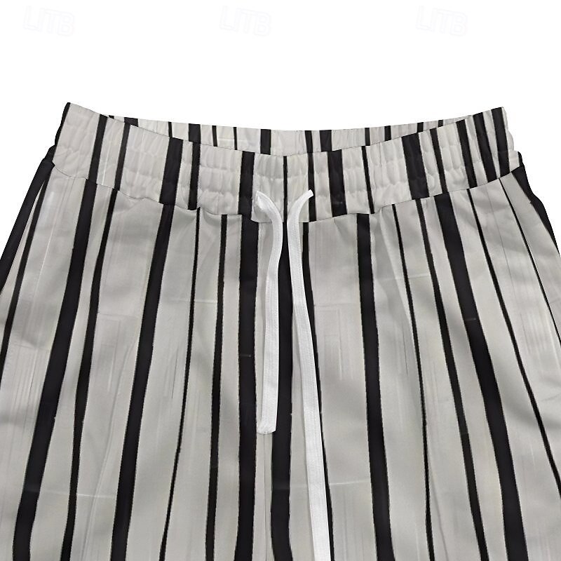 Men's Athletic Pants Sweatpants Trousers Pocket Drawstring Elastic Waist Striped Comfort Sports Outdoor Daily Fashion Casual Black-White Black Micro-elastic 7