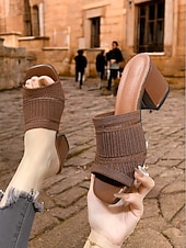 Highlights - Stylish and comfortable upper material made of knit - Luxurious synthetic leather lining for added durability - Stable and sturdy block heel for all-day wear - Fashionable open toe design - Reliable rubber outsole for traction and grip