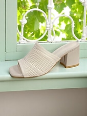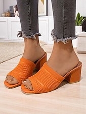 More information about Women's Orange Knitted Block Heel Slide Sandals – Trendy Textured Open-Toe Mules for Daily Wear & Casual Dates