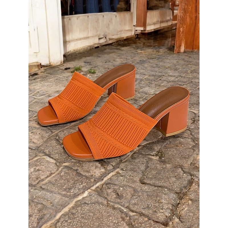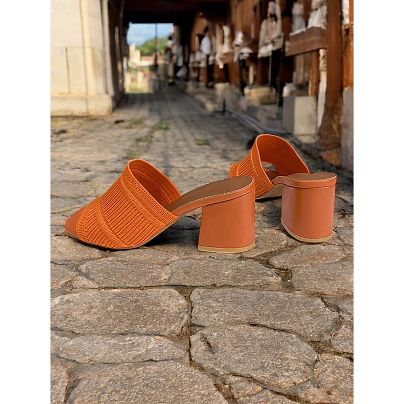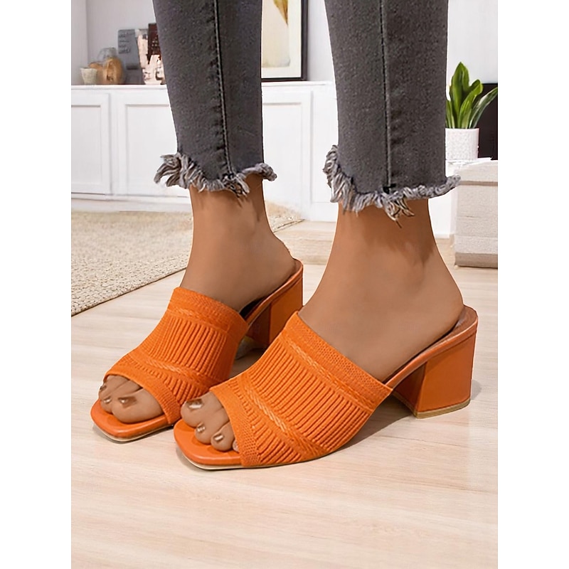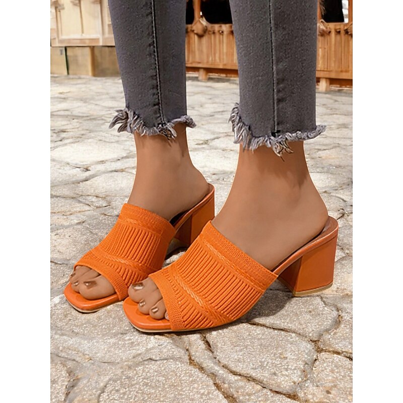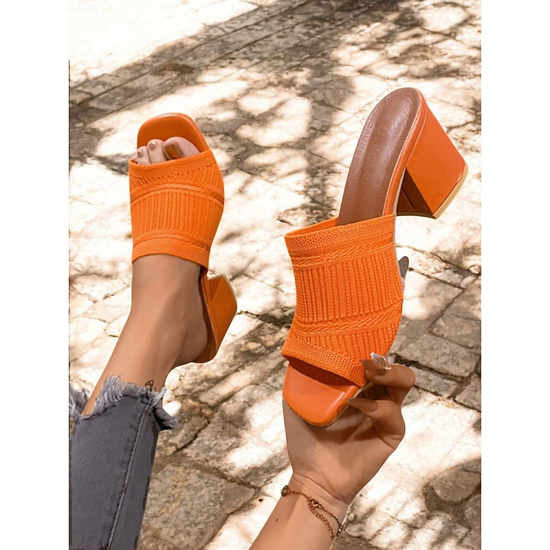 Women's Orange Knitted Block Heel Slide Sandals – Trendy Textured Open-Toe Mules for Daily Wear & Casual Dates 17