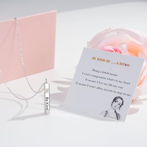 • 💕Ideal Gifts💕 Every be kind bar necklaces comes in a exquisite gift box with exquisite gift card and a wipe silver cloth. It is an ideal gift for your family and friends to expresses your sincere emotion to them on Christmas, Birthday, Anniversary, Celebration,Graduation,Valentine's day,Wedding,Engagement,Congratulation.