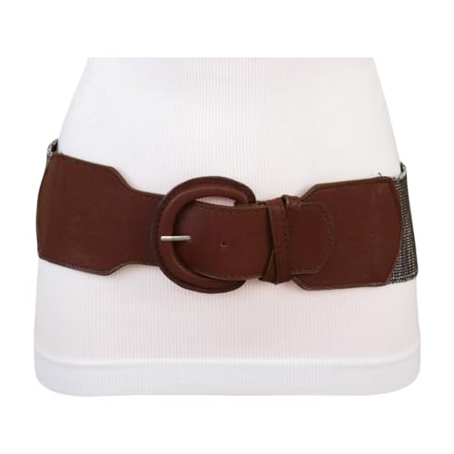 • Elevate your wardrobe with our Women's Brown Stretch Faux Leather Elastic Distressed Fabric Waistband Belt, featuring a Silver Metal Buckle. This belt combines style and functionality, making it a perfect addition to your fashion collection for its unique and stylish appeal.