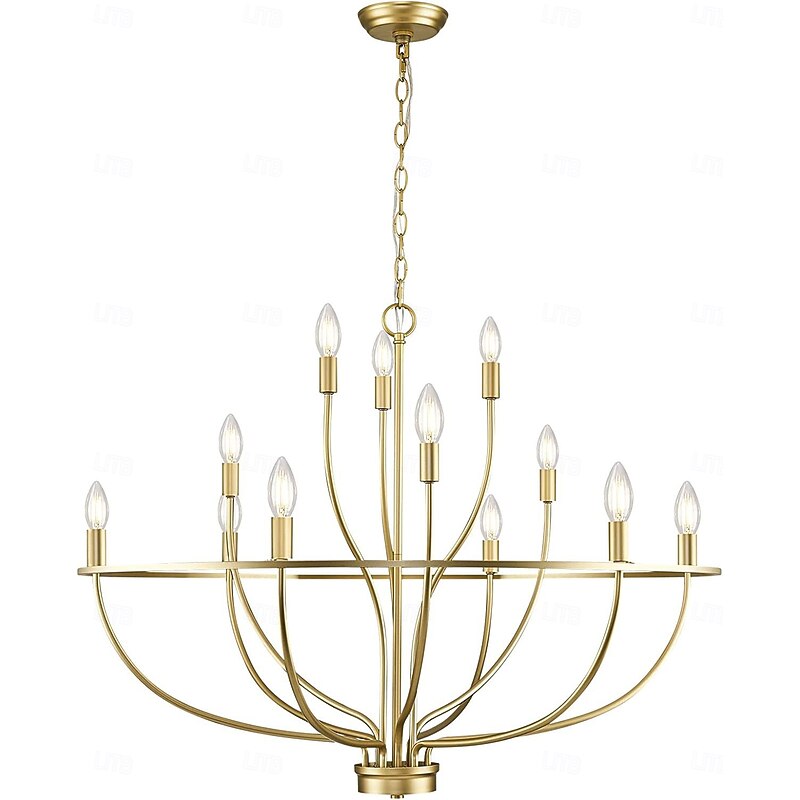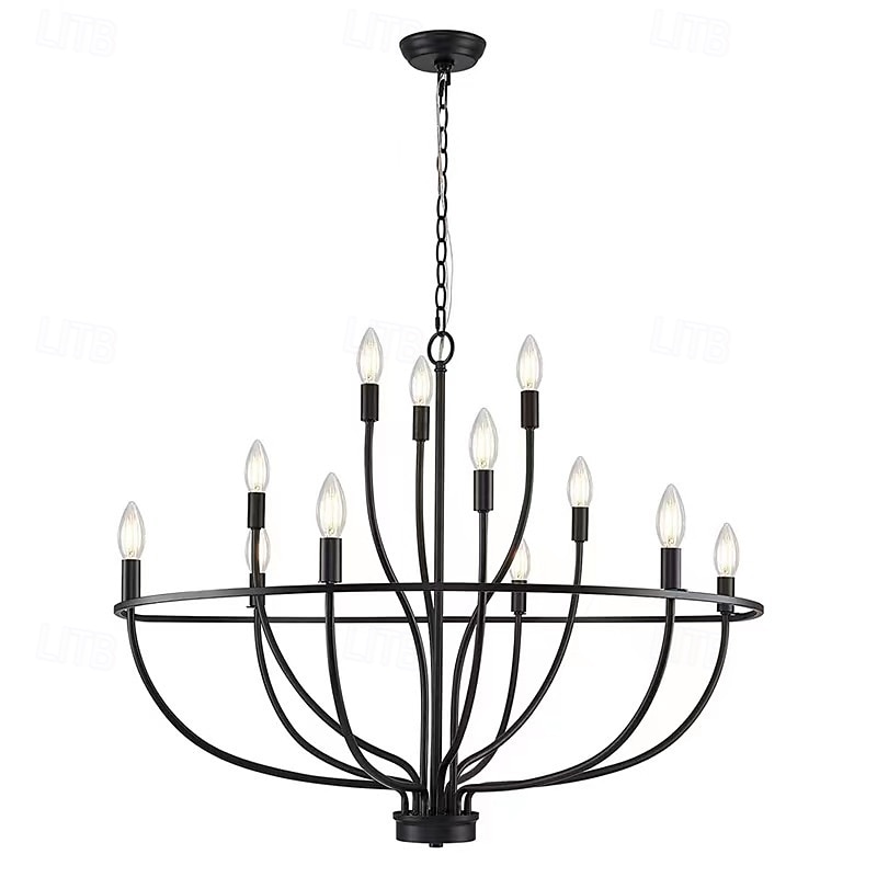 LED Pendant Light 6/9/12-Light Industrial Vintage Large Round Rustic Candle Chandelier for Living Room Bedroom 110-240V 12