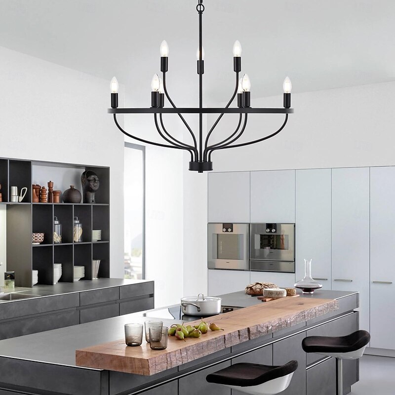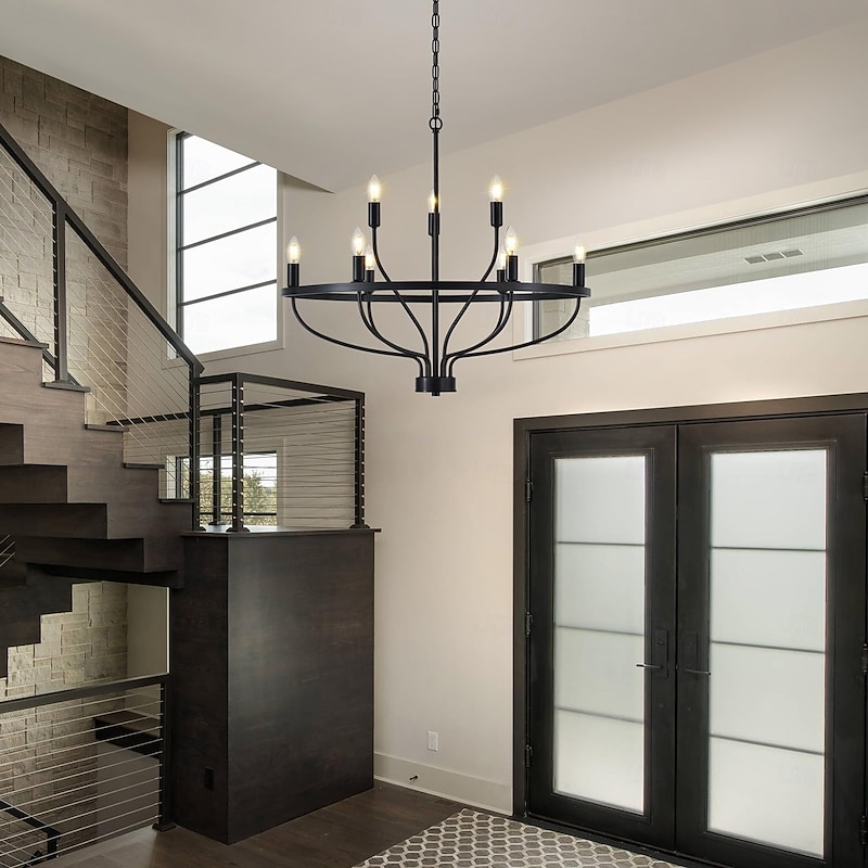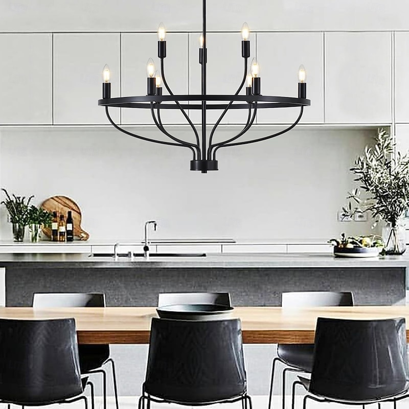 LED Pendant Light 6/9/12-Light Industrial Vintage Large Round Rustic Candle Chandelier for Living Room Bedroom 110-240V 8