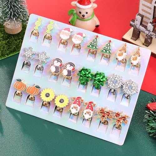 • 【Holiday Earrings Variety Pack】:With Thanksgiving and Christmas themes, we offer you 12 pairs of holiday clip on earrings in different styles. Thanksgiving earrings include maple leaf earrings, sunflower earrings, pumpkin earrings, candy earrings; while Christmas earrings are snowflake earrings, Christmas tree earrings, penguin earrings, gnome earrings, bow earrings, Santa Claus earrings.