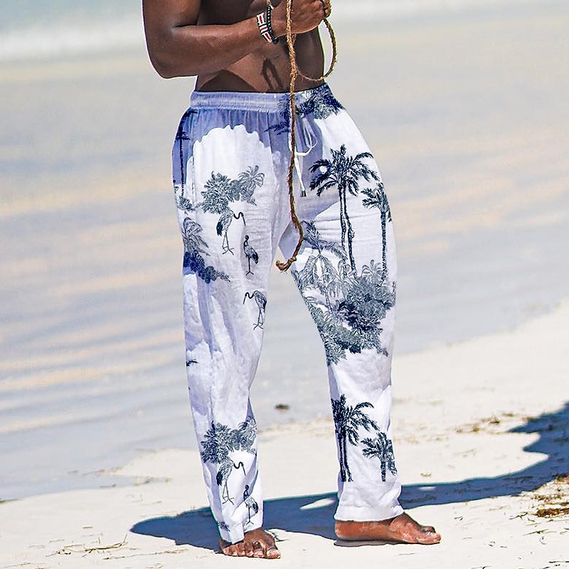 More information about Beach Pants Floral Mens Graphic | Summer Daily Holiday White | Ethnic Striped | Trousers Drawstring Elastic Waist 3D Print Leaf Prints Comfort Casual Streetwear Hawaiian