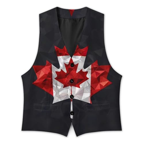 Canada Flag Diamond Novelty Men's Suit Vest Casual Formal Dress Vests Business Waistcoat 3