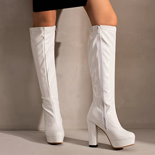 KISSASA Womens Patent Knee High Gogo Boots Chunky High Heel Platform Zip Up Boots 6