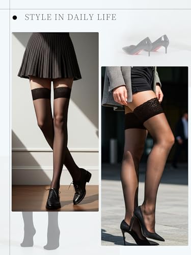 • 【PREMIUM SHEER & COMFORTABLE FABRIC】 Made from high-quality nylon and spandex, these women’s hosiery thigh highs offer a silky-smooth, breathable feel against the skin. Lightweight and stretchable, they fit like a second skin without digging in. Even after wash, these sexy sheer thigh highs retain their elasticity, smooth finish, and shape, delivering long-lasting comfort and style for work or play.