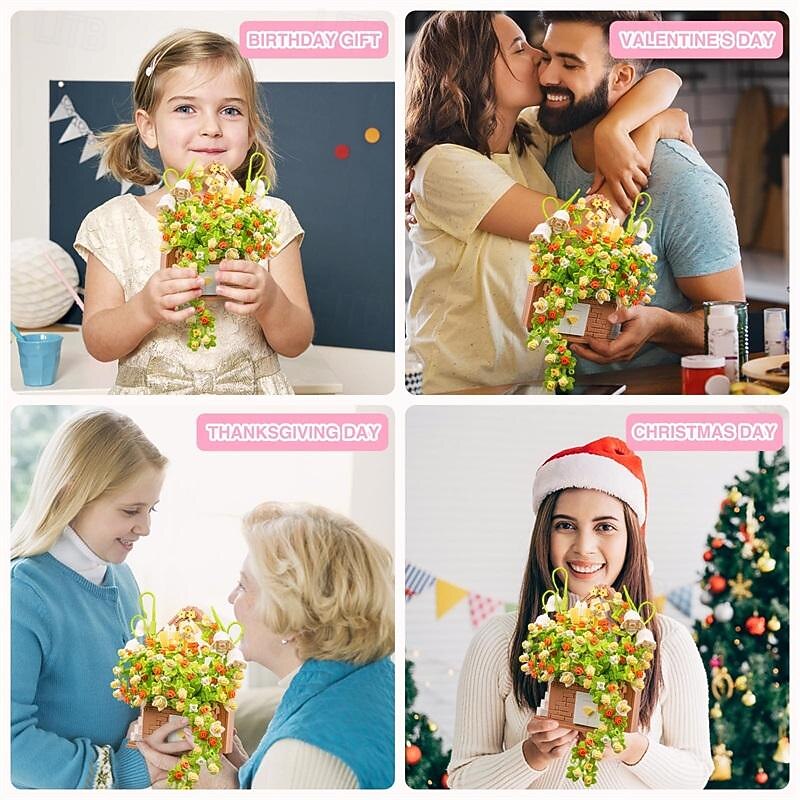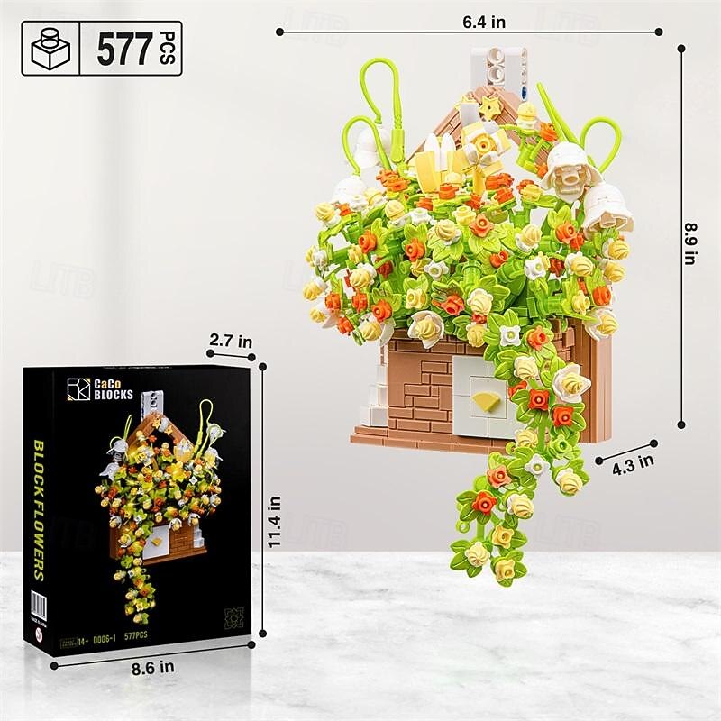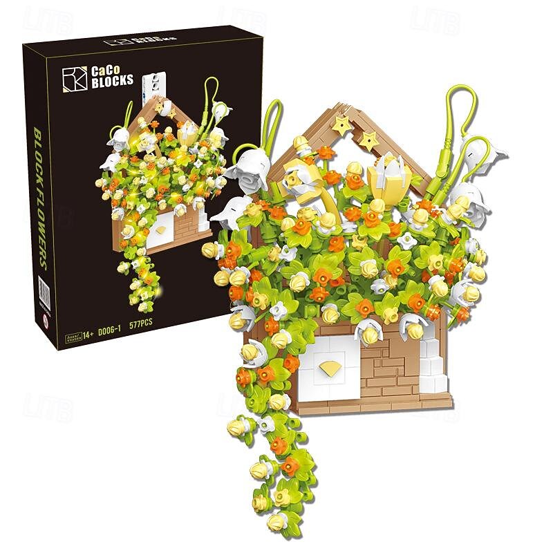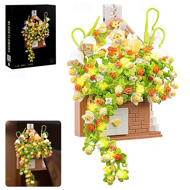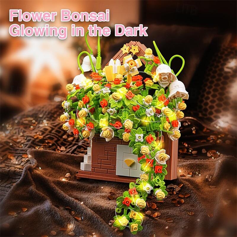 HOT ! Women's Day Gifts Flower Bouquet Building Set Flowers House Bonsai Plants with LED Light Botanical Collection Wall Decor Creative Building Toy Mother's Day Gifts for MoM