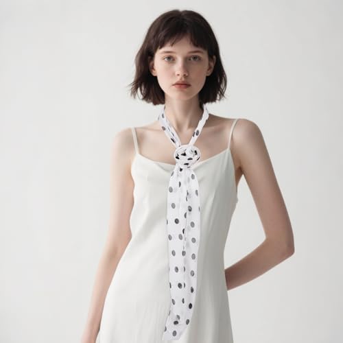 • Classic Black & White Polka Dots:This black chiffon scarf features timeless black and white polka dots, a versatile pattern that pairs effortlessly with any outfit