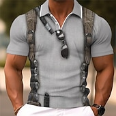 Highlights [Fabric and Material] Made from high-quality polyester and waffle fabric, this men's polo shirt is designed to be lightweight, breathable, and stretchy, ensuring comfort and style in the warmer months. [Fit and Silhouette] The shirt features a fitted silhouette that highlights a well-defined physique. Its short sleeves allow for ease of movement, making it ideal for those who appreciate both fashion and function. [Design Highlights] This polo shirt boasts a unique 3D graphic print, giving it a cosplay-inspired edge. The classic collared neckline with a buttoned placket adds a touch of classic elegance, while the playful graphic resembling a backpack with sunglasses offers a fun and adventurous vibe. [Occasions] Perfect for vacation wear, rave wear, and party outfits, this polo shirt is versatile enough for a variety of casual and leisure events. Whether you're enjoying a sunny day out or attending a night event, this shirt adds a touch of charm and individuality. [Size Range] Available in a wide range of sizes including S, M, L, XL, XXL, and XXXL, this shirt caters to different body types for a comfortable and personalized fit.