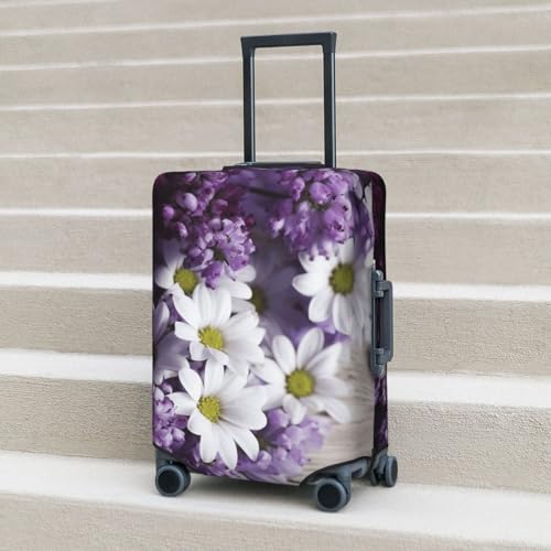 Travel Luggage Cover Purple White Flowers Suitcase Protector Elastic Washable Stretch Suitcase Protector Anti-Scratch Travel Suitcase Cover Fit 18-32 Inch Luggage 6