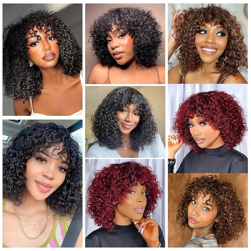 $86.99 - Curly Bob Wig Human Hair With Bangs None Lace Front Glueless Natural Color 2025. Shop for cheap Human Hair Capless Wigs online? Buy at lightinthebox.com on sale today!
