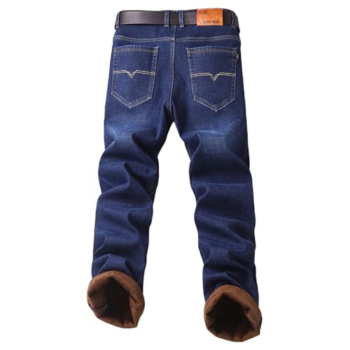 More information about Men's Baggy Jeans Thermal Winter Fleece Lined Thickened Relaxed Fit Stretch Denim Pants Business Casual Pants with Button Fly