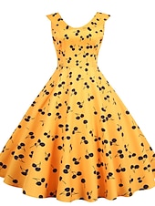 More information about Retro Vintage 1950s Rockabilly Midi Dress Swing Dress Flare Dress Floral Cherry Daisy A-Line Turndown Fancy Dress Women's Carnival Vacation Daily Wear Retro Theme Party Adults' Dress Spring & Summer