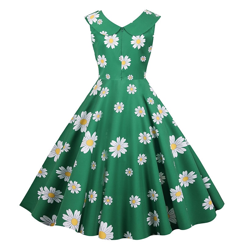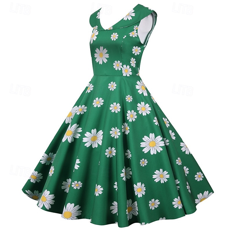 Retro Vintage 1950s Rockabilly Midi Dress Swing Dress Flare Dress Floral Cherry Daisy A-Line Turndown Fancy Dress Women's Carnival Vacation Daily Wear Retro Theme Party Adults' Dress Spring & Summer 14