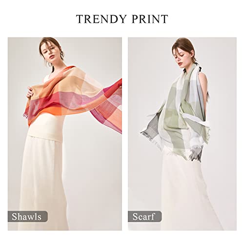 • SELECTED FABRIC: The scarf is made of high-quality polyester, and the cotton yarn fabric is light and smooth, with a soft and delicate touch to ensure a good wearing experience. Unique herringbone jersey knitting process, compact and fine weave, not easy to snag or wrinkle, easy to care and more practical. The hazy texture design, herringbone weave with a sense of detail adds to the fullness and vividness of the pattern. The good drape of the fabric creates an ethereal and smart wearing effect.