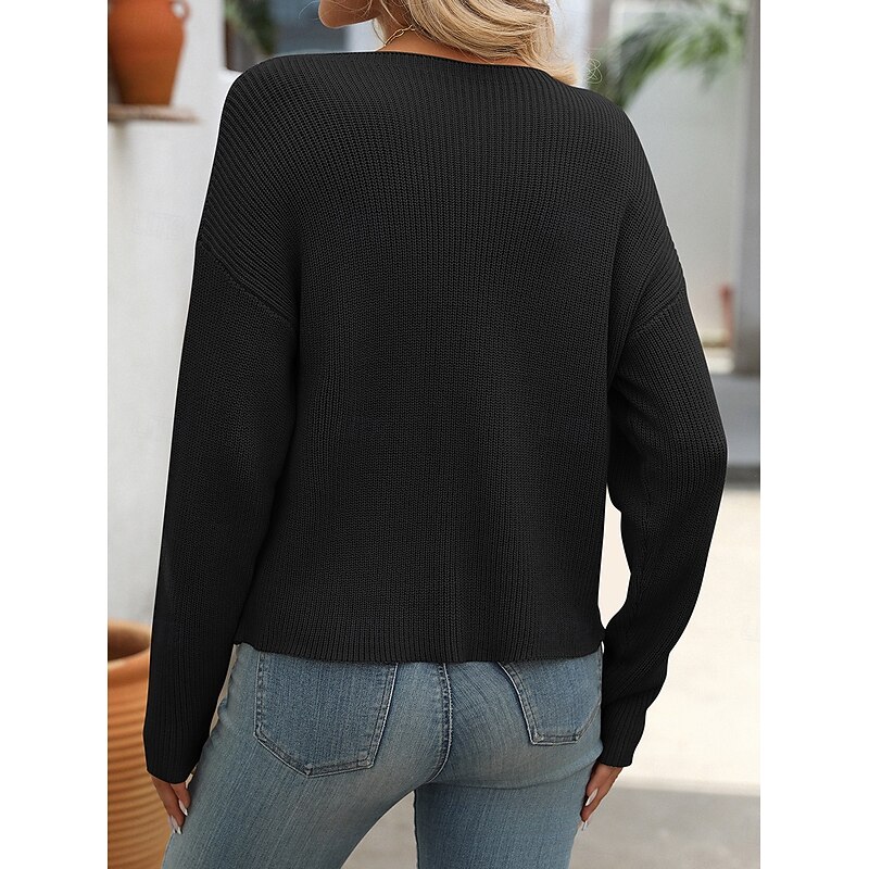 Highlights [Fabric] : Made from a blend of nylon and acrylic, this sweater offers a soft, stretchy, and high-quality knit fabric that provides comfort and warmth for the wearer. The solid color design gives it a modern touch, perfect for any stylish ensemble. [Fit] : The sweater boasts a relaxed fit with a loose silhouette that drapes elegantly on the body. The stretchy material offers a snug fit at the hem and cuffs due to ribbed detailing, making it versatile for layering over other pieces. [Design Highlights] : Featuring an off-the-shoulder neckline, this sweater adds a touch of sophistication and femininity. The oversized long sleeves enhance its cozy appeal, and the addition of a single front pocket adds both to its aesthetic appeal and functionality. [Occasions] : Ideal for work settings or casual outings in spring, fall, or winter, this stylish and modern design makes it a perfect addition to any wardrobe. Pair it effortlessly with jeans or skirts for a chic look. [Size] : Available in a range of sizes from S to XL, suitable for various body types, ensuring a comfortable and stylish fit for a wide audience.