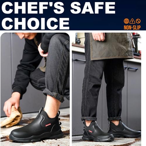 • 【Non-Slip Work Shoes】-Superior Slip Resistance-The rubber sole with a professional-level anti-slip texture design provides extremely strong grip. Let you stand firm and walk briskly in the slippery working environment.