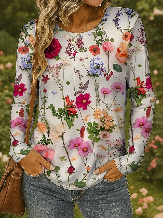 More information about Women's T shirt Long Sleeve Crew Neck Long Sleeve Tunic Floral Graphic Plants Vintage Stylish Classic Round Neck Regular Tops Daily Print Yellow Red Blue Purple Green Fall Prefall