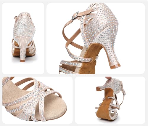Rosefinch Women's Latin Dance Rhinestone Shoes - Soft Bottom Modern Pole Ballroom Wedding High Heel Adjustable for Girls Ladies 1