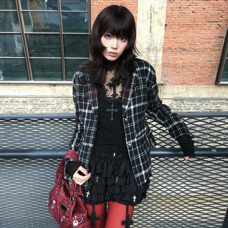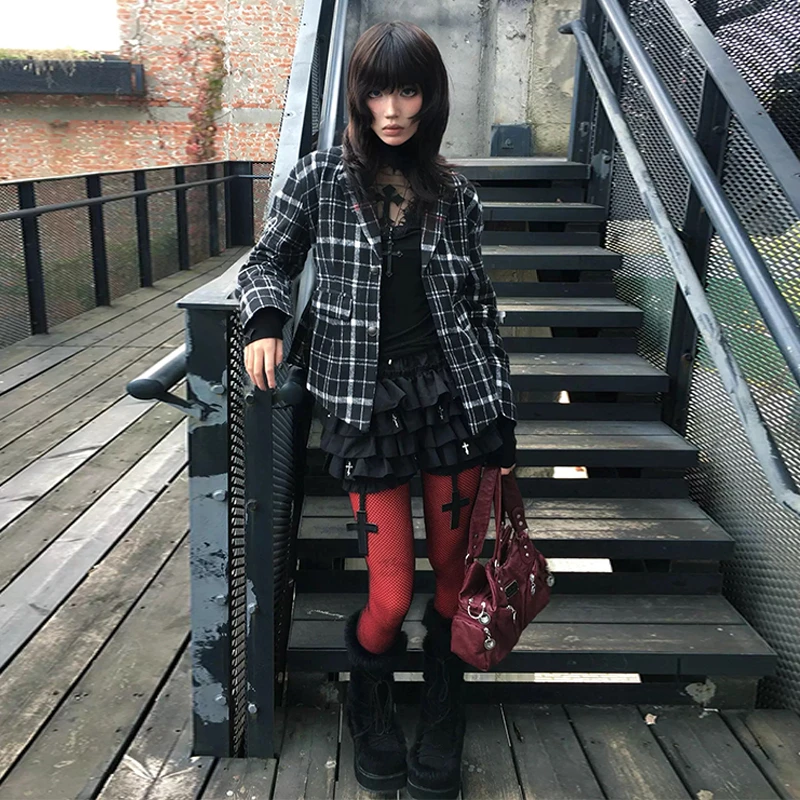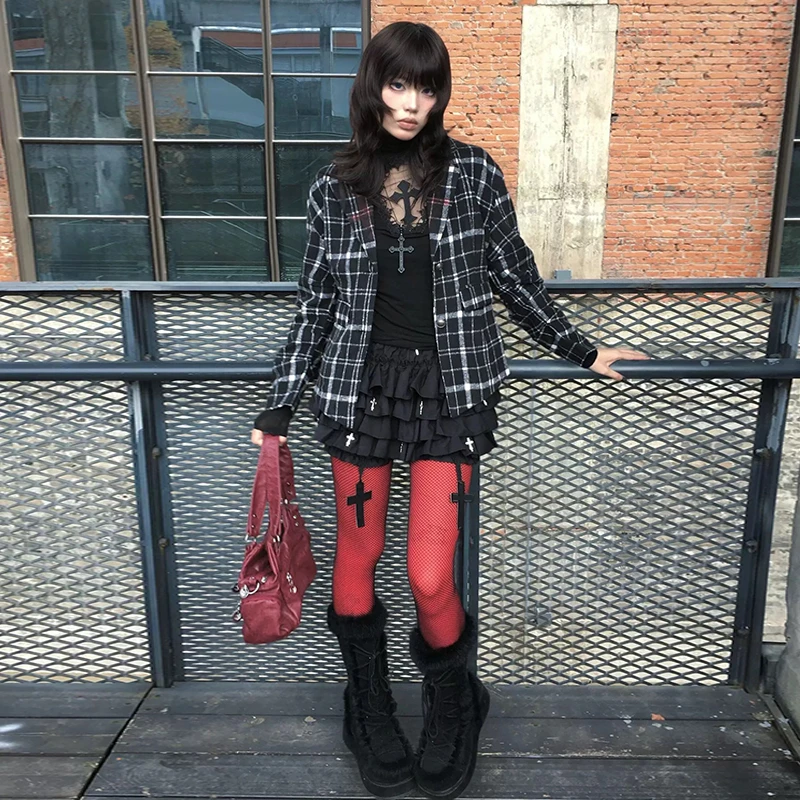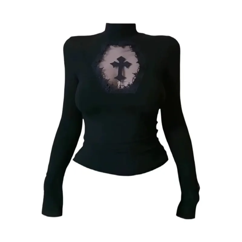 Genayooa Y2k Gothic T Shirt Women Hollow Out Patchwork Vintage Crop Tops Streetwear American Retro Grunge Tops Aesthetic Tshirt