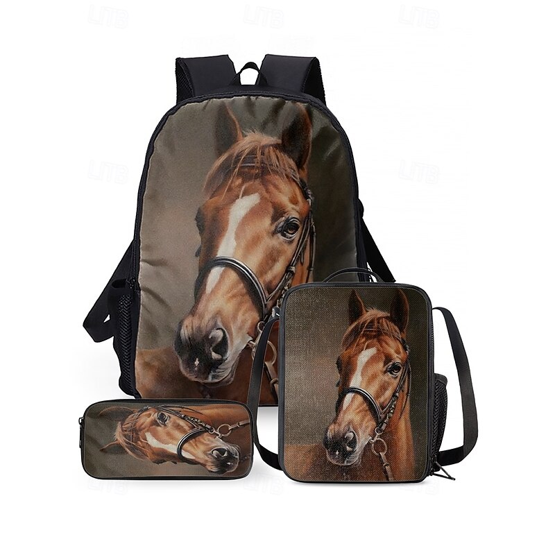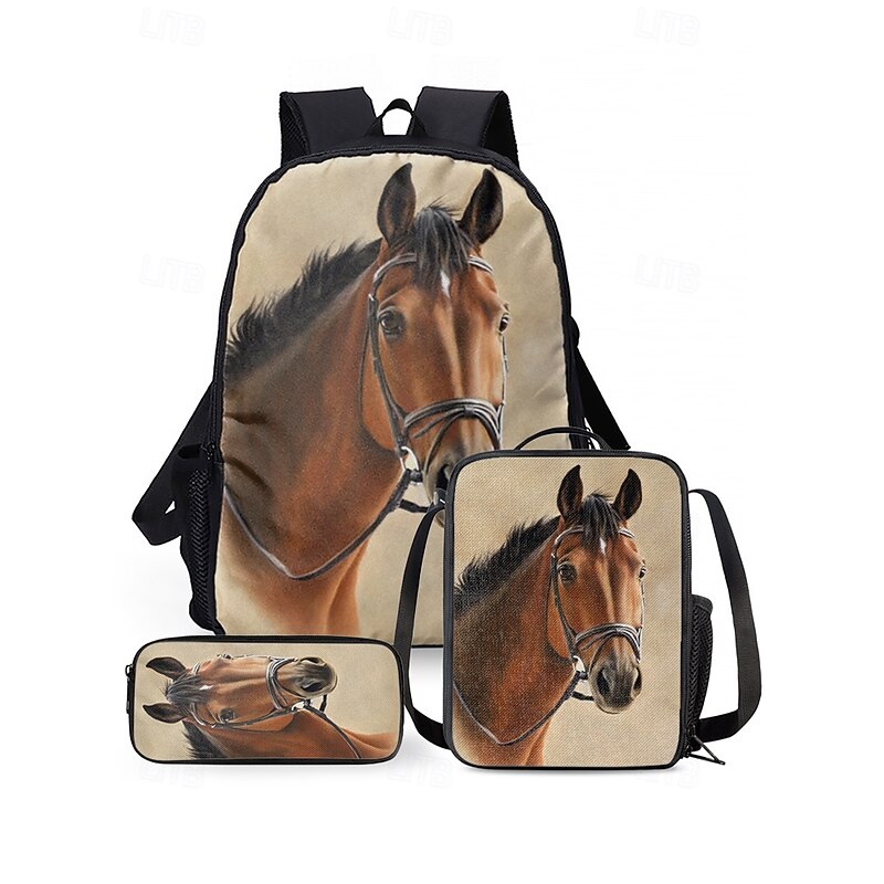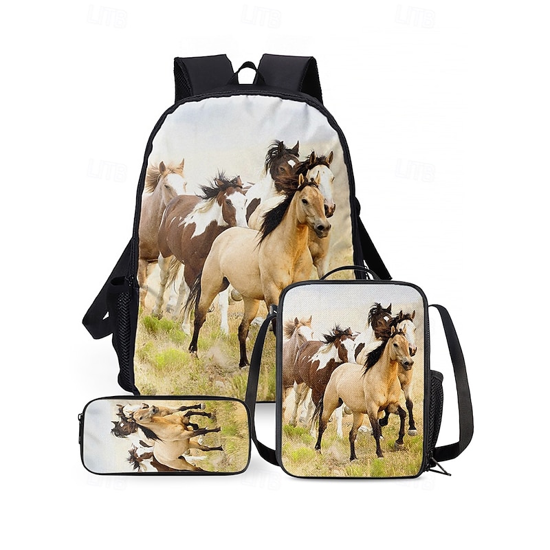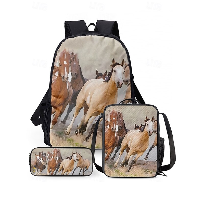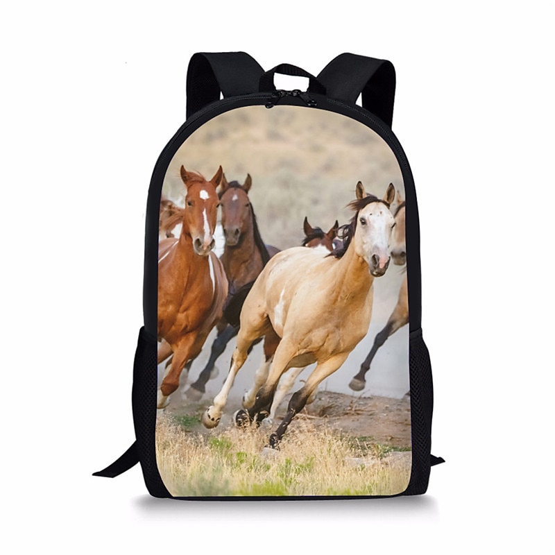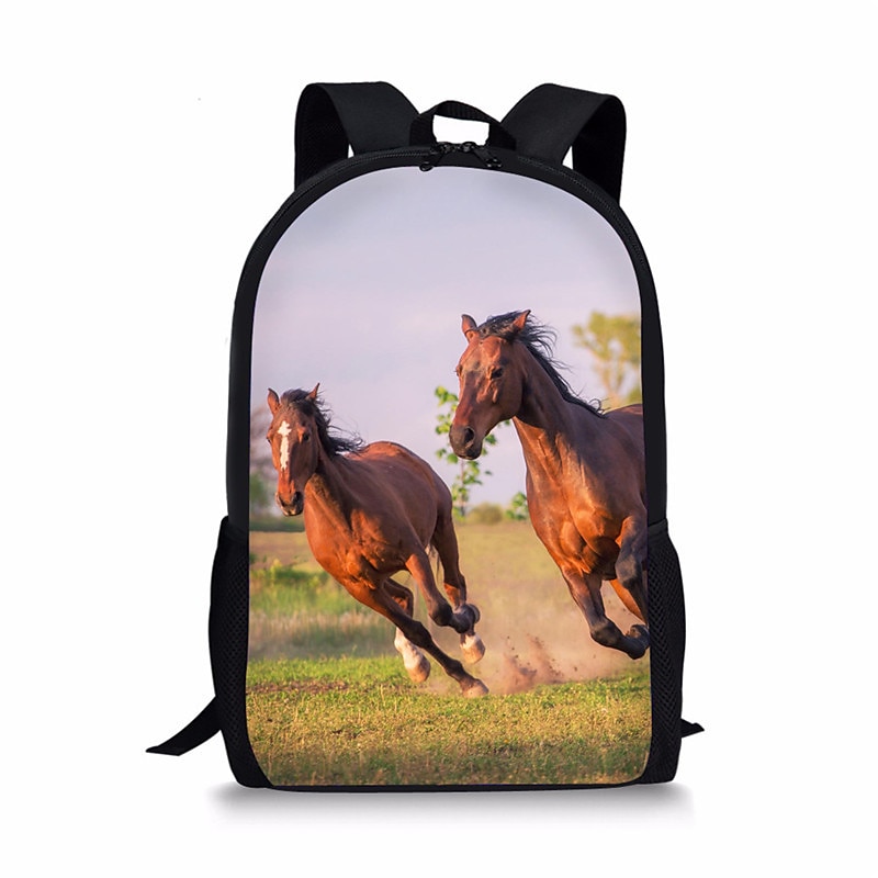 HOT ! Running Horses Print Backpack for Kids and Teens – Wild Animal School Bag with Nature Landscape Design for Boys and Girls