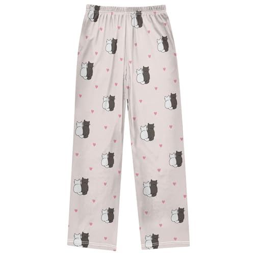 HOT ! Boy's Pj Pants Cat Lover Couple Light Pink Heart Lounge Bottoms Elastic Waist Kids Joggers with Pockets Size 6-14