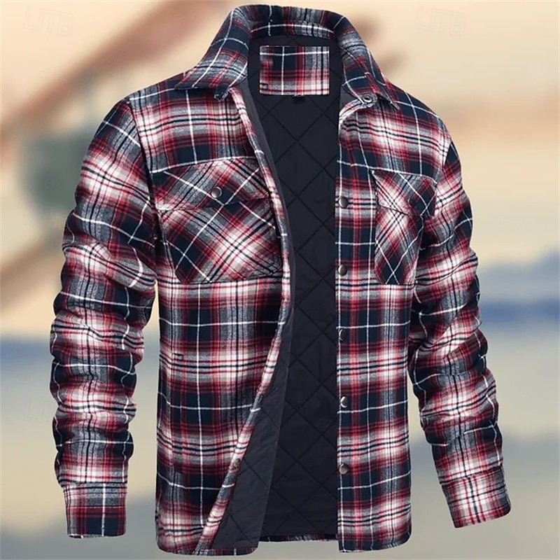 More information about Men's Winter Jacket Padded Shacket Daily Vacation Thermal Warm Wearproof Pocket Fall & Winter Plaid Fashion Classic Lapel Regular Black Wine Navy Blue Sky Blue Orange Jacket
