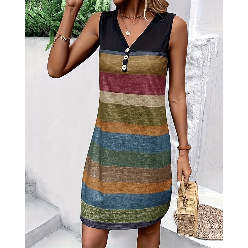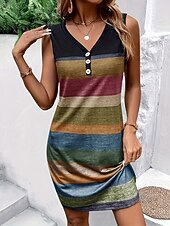More information about Women's Mini Dress Casual Dress Summer Dress Fashion Modern Daily Beach Weekend Regular Fit Color Block Sleeveless V Neck Rainbow Spring Fall