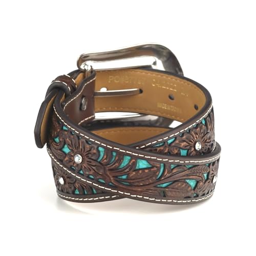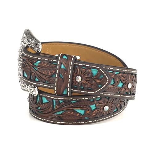 HOT ! ARIAT Girls' Floral Overlay Belt with Bright Blue Underlay and Rhinestone Accents