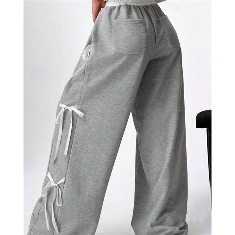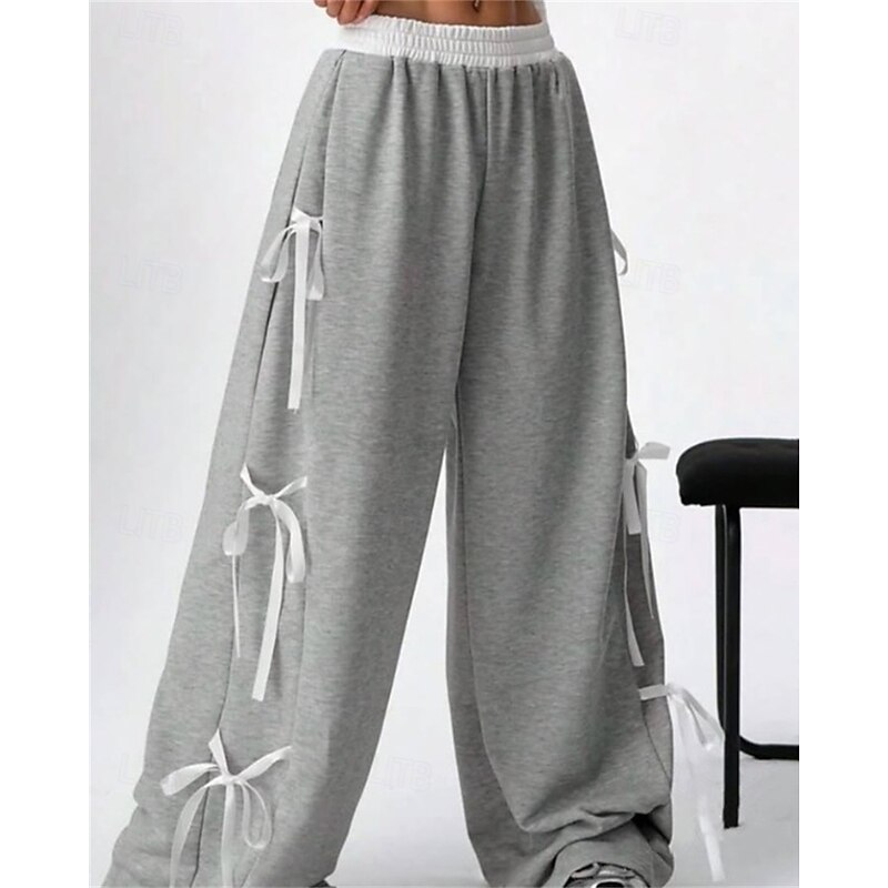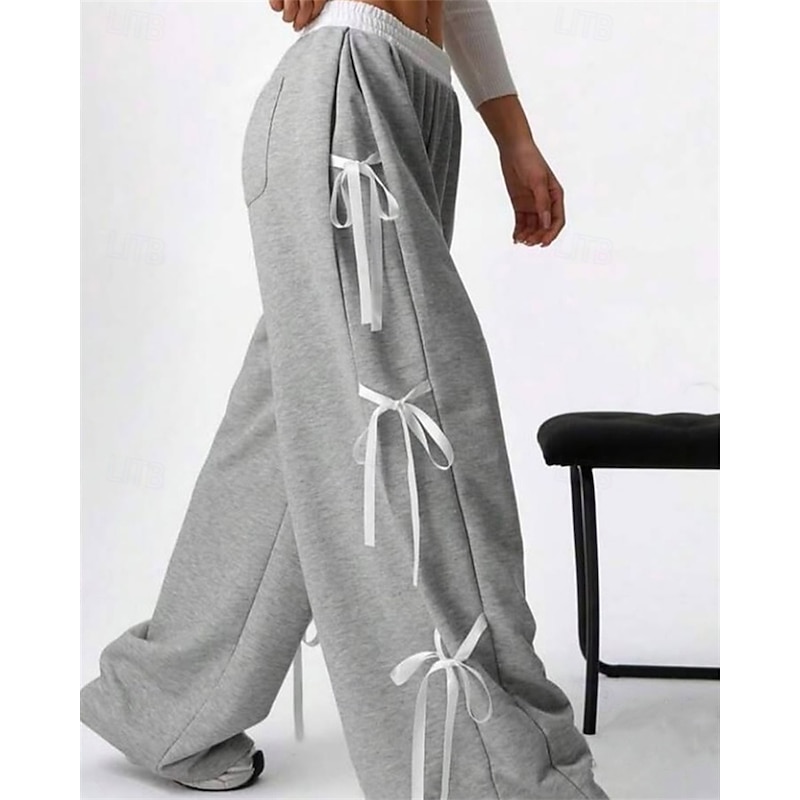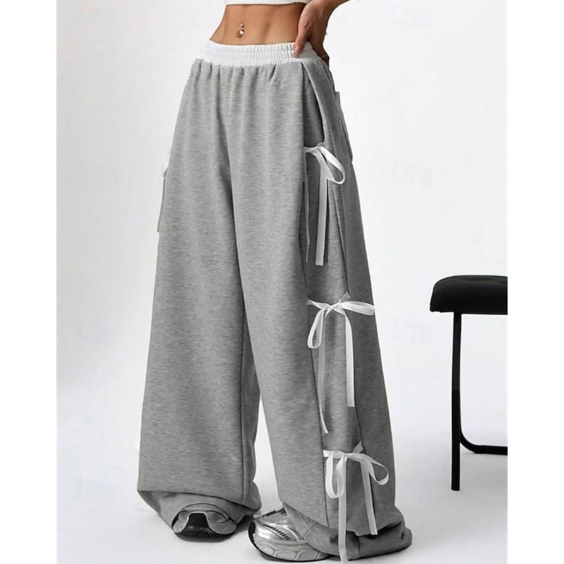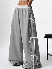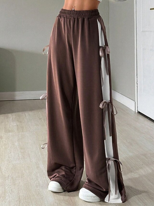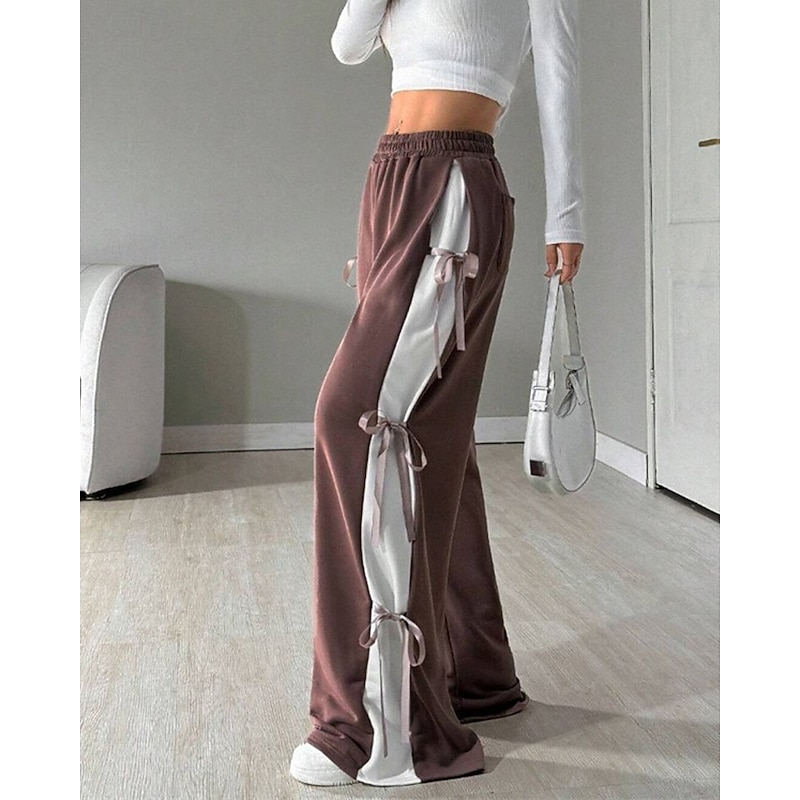More information about Women's Sweatpants Palazzo Pants Fashion Streetwear Comfort Full Length Mid Waist Color Block Patchwork Elastic Waist Comfy Comfortable Street Daily Wear Going out Coffee Gray Summer Spring Regular