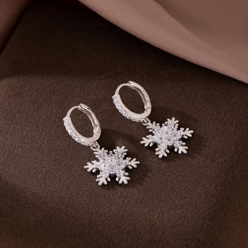 SLUYNZ Solid 925 Sterling Silver Sparkling CZ Snowflake Hoop Earrings for Women Teens Snowflake Hoop Earrings Huggie Earrings Drop Christmas Gifts 1