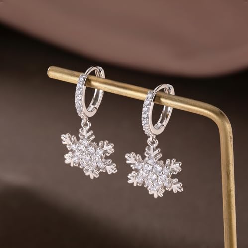 HOT ! SLUYNZ Solid 925 Sterling Silver Sparkling CZ Snowflake Hoop Earrings for Women Teens Snowflake Hoop Earrings Huggie Earrings Drop Christmas Gifts