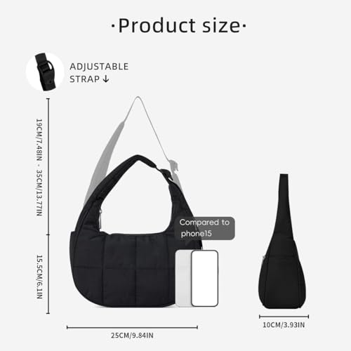 More information about Quilted Puffer Tote Bag for Women,Small Puffer Crescent Shoulder Bag,Quilted Nylon Crossbody Bag with Adjustable Strap