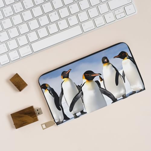 HOT ! Leather Wallet for Women Ladies Novelty Printed Around Zipper Long Wallet Phone Purse Credit Card Holder, Penguin