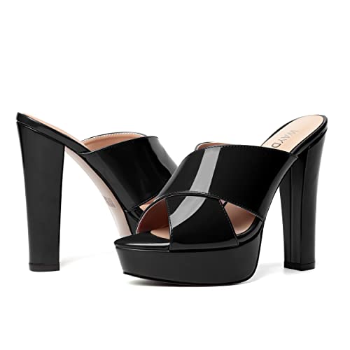WAYDERNS Womens Slip On Patent Peep Toe Dating Fashion Block High Heel Platforms Sandals 5 Inch 1