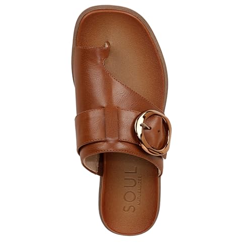 Origin: ImportedSole material: Synthetic RubberOuter material: Polyurethane (PU)Closure type: Slip OnSleek sandals with a slight wedge and oversized buckle for womenFaux leather upper with a toe loop="loop" and round open toeSlip-on fit for hassle-at no charge on/offSoulContour Technology: sculpted insole, premium foam lining, arch support with memory foam, antimicrobial lining, lightweight and flexible outsoleFlexible and lightweight EVA footbed with 3/8 inch platform, 1 inch wedge heel