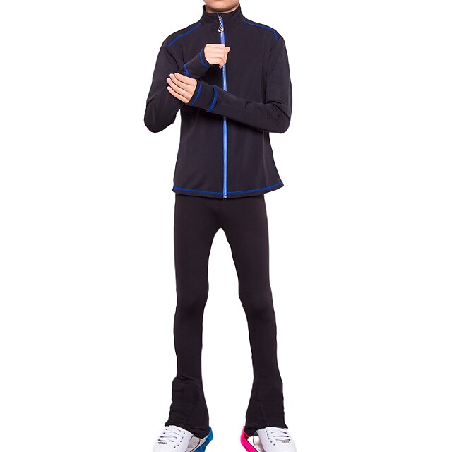 HOT ! Figure Skating Jacket with Pants Men's Boys Ice Skating Jacket Pants / Trousers Leggings Black Blue Thumbhole Fleece Spandex High Elasticity Training Practise Competition Skating Wear Thermal Warm