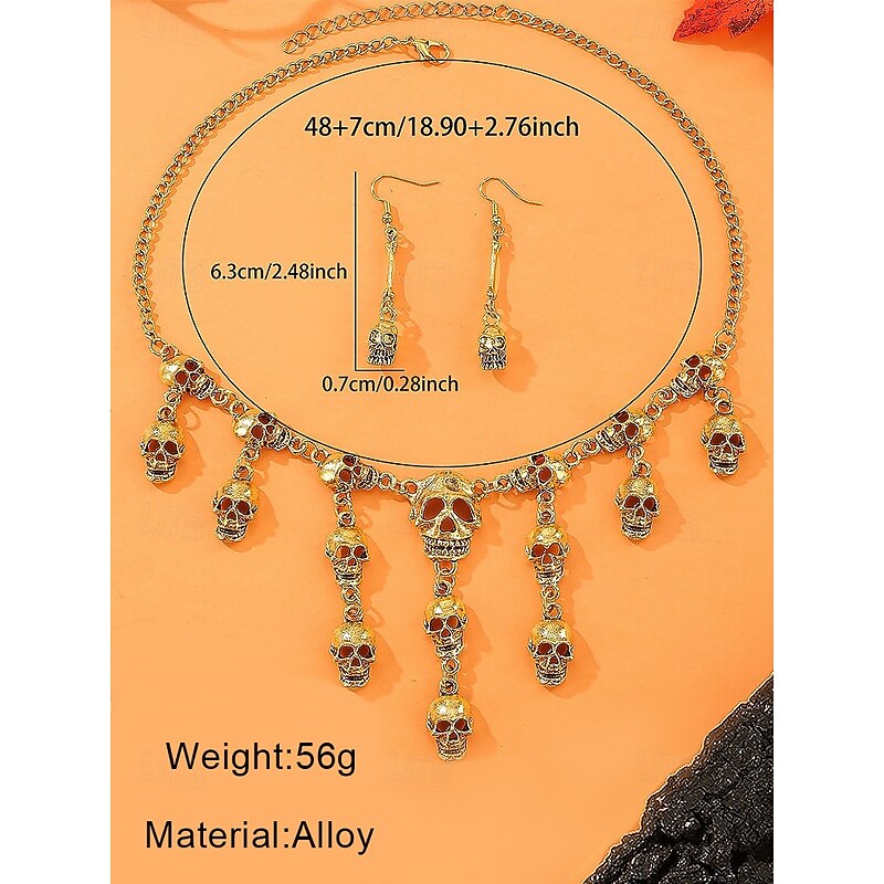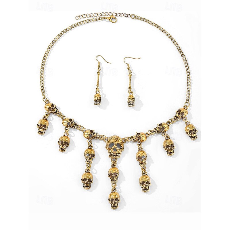 $11.99 - Women's Halloween Skull Necklace and Earring Set – Gothic Punk Jewelry with Multiple Skulls in Gold and Silver Colors for Party, Cosplay and Costume Outfits 2025. Shop for cheap Halloween Accessories online? Buy at lightinthebox.com on sale today!