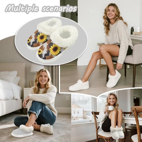 • Warm Winter Slippers: Featuring a soft fluffy plush edge, the house slippers wrap your feet very well, keep your feet warm and comfottable whether in socks or bare feet.