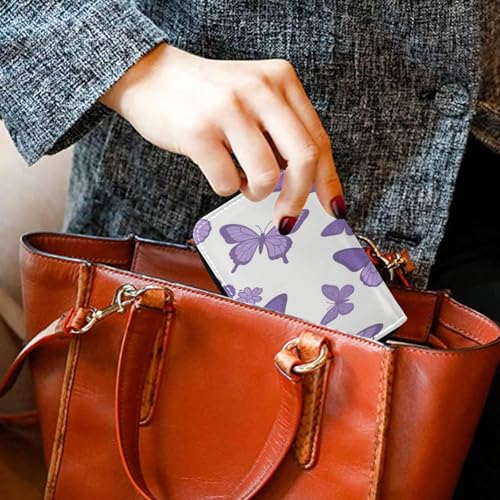 Purple Butterflies Pattern Credit Card Holder Case Leather Printed Zipper ID Card Case Wallet Small RIFD Blocking Wallet for Women Girls 1